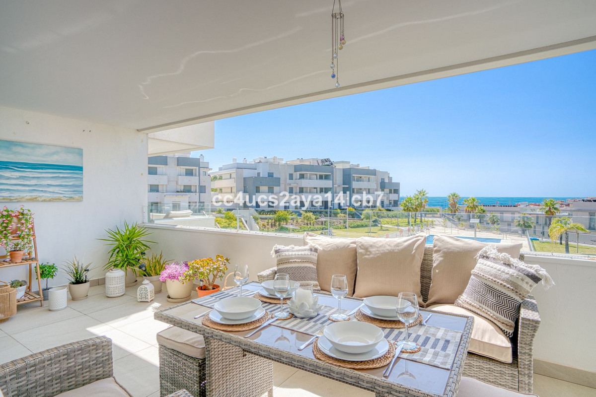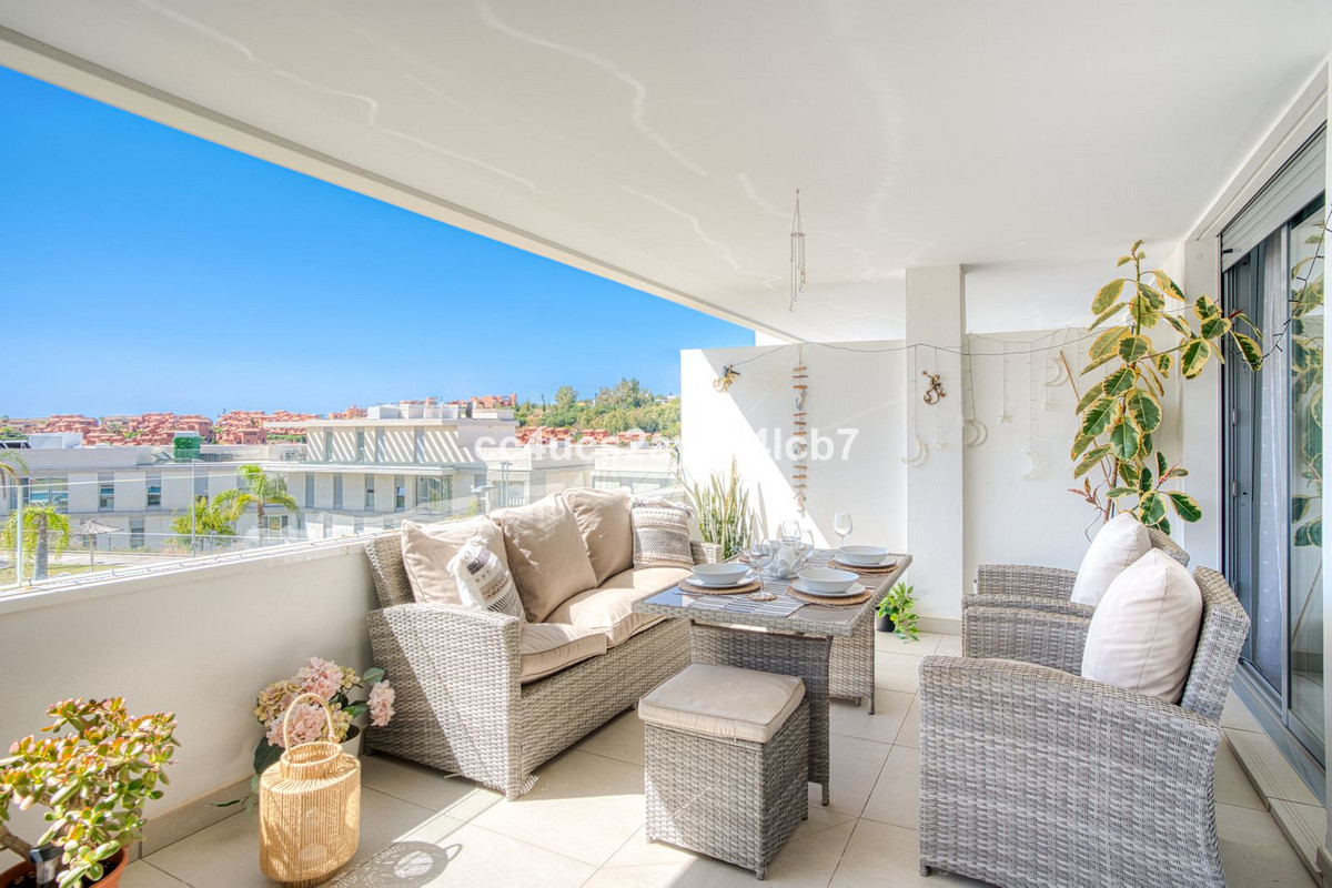 A lovely elevated ground floor apartment in the exclusive area of Selwo, Estepona. Enjoy the stunning views across the sea to Africa from your covered terrace, or have a cooling dip in the communal pool. Ideal location for either holidays or permanent living.