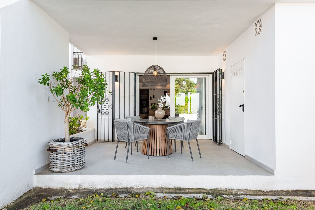 Welcome to this stylish and fully renovated ground-floor apartment located in the highly sought-after Andalucía Garden Suites, one of the most established and popular residential communities in Nueva Andalucía. The apartment features two tastefully decorated bedrooms and two modern bathrooms, all within an open-plan layout and furnished with carefully selected designer pieces that create a harmonious and elegant atmosphere.