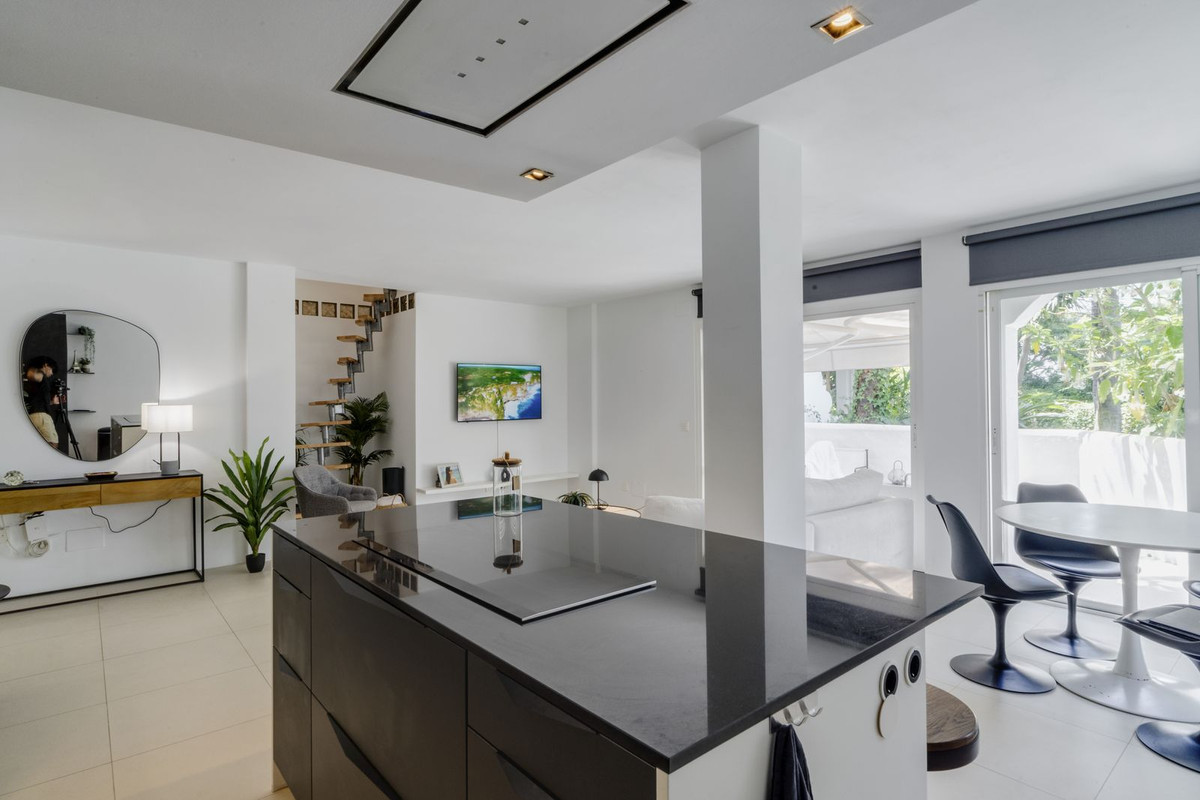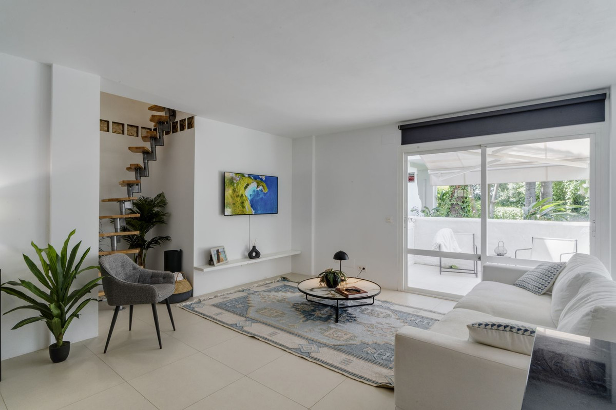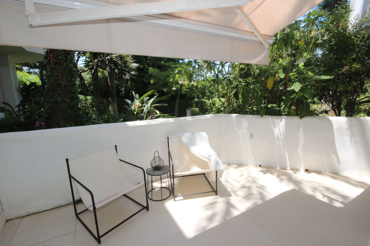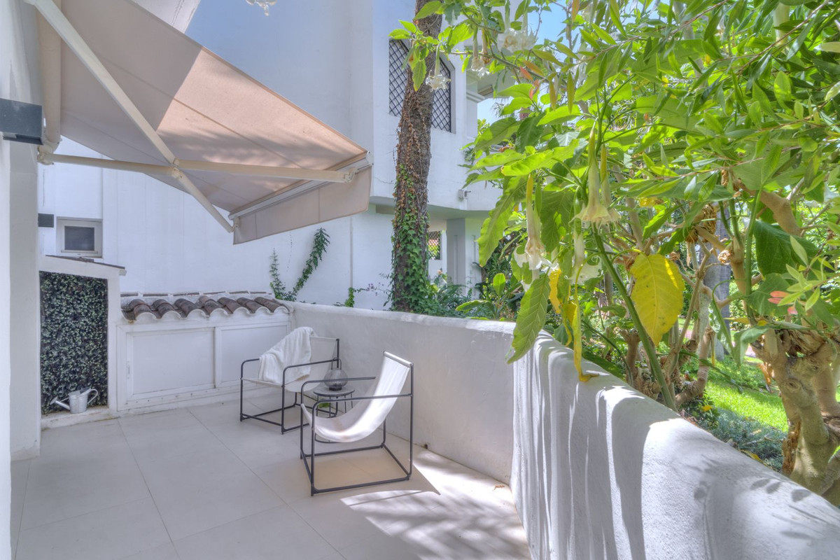 Discover this spacious ground floor apartment, a true gem in Marbella East, that perfectly combines romantic Andalusian-style architecture with a modern design and renovation.