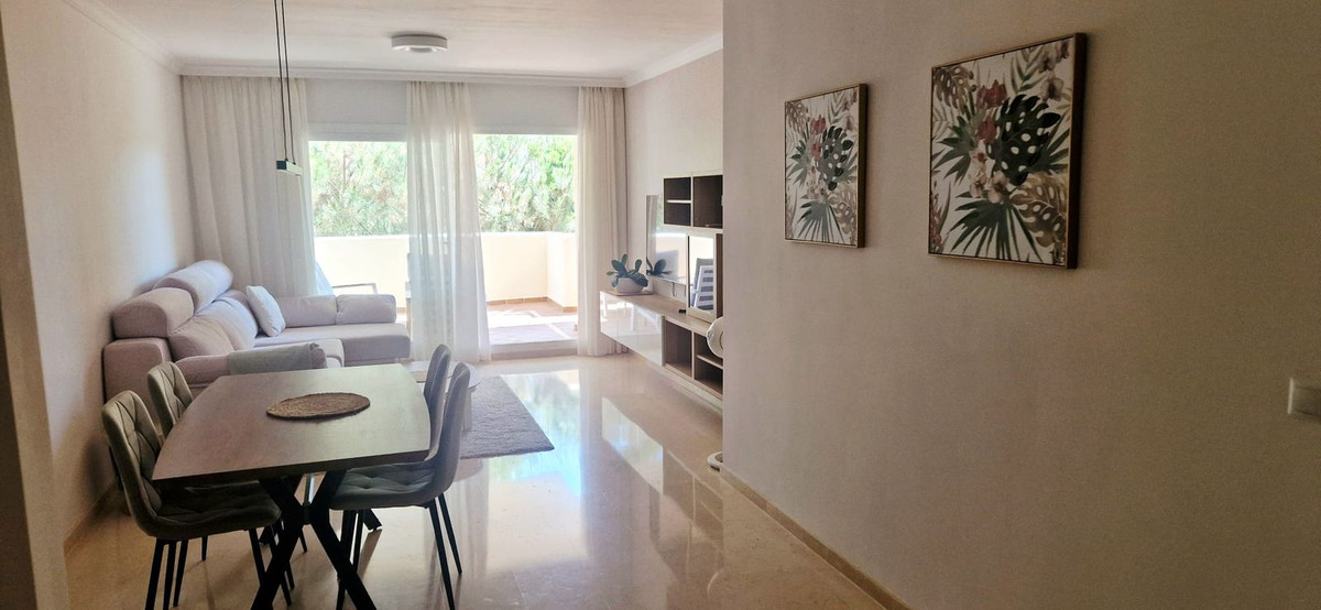 Discover the charm of coastal living in this recently renovated and little used 100 m² apartment located in the quiet neighborhood of Elviria, Marbella. Perfect for those who crave comfort, this inviting home offers a spacious and bright living room, two inviting bedrooms, and two modern bathrooms. The kitchen is well-equipped with all necessary appliances, while the terrace offers a lovely space to privacy and relax.