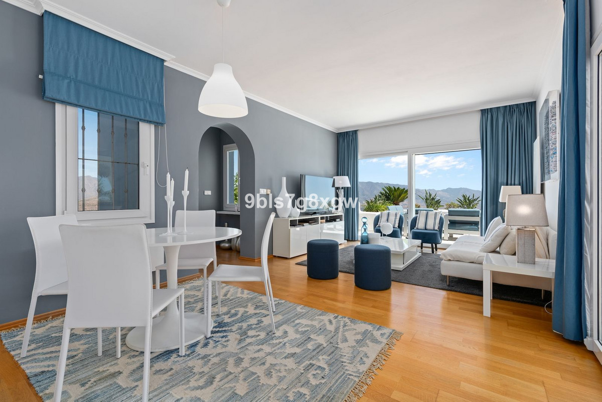 Inside, the apartment opens into a spacious and bright living area, a fully equipped kitchen, and a separate laundry room. The expansive master suite includes a walk-in wardrobe and a en-suite bathroom with underfloor heating. The second double bedroom features built-in wardrobes and is served by a family bathroom. Both bedrooms enjoy direct access to the terrace and are oriented towards the stunning views, allowing you to wake up to the natural beauty of La Mairena every day. Additional built-in storage in the hallway adds practicality and convenience, making this home as functional as it is beautiful.