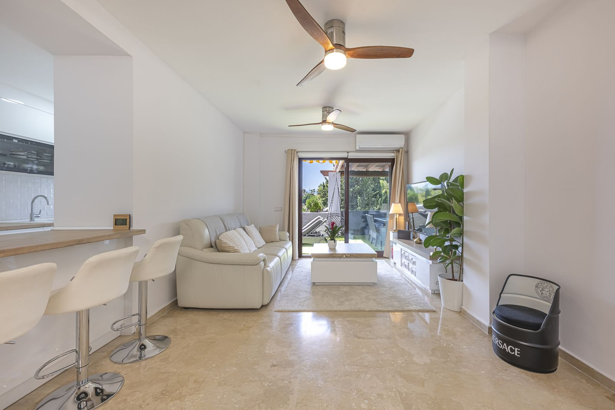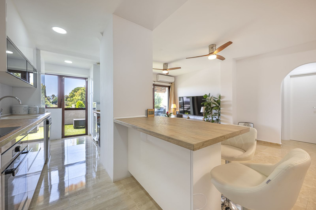 Located in a gated community with security, the complex offers a swimming pool and beautifully maintained tropical gardens, providing a peaceful oasis just minutes from Marbella's city center.