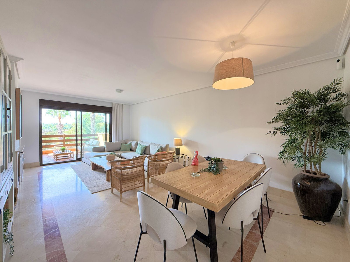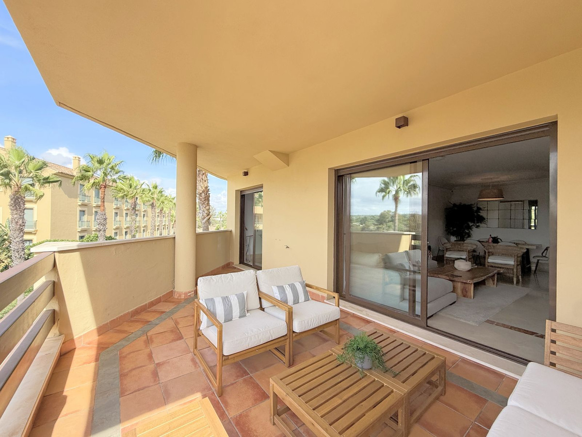 Exclusive Apartment with Terrace and Views of Sotogrande Marina. Located in the Ribera de Sotogrande, this apartment is just 300 meters from the beach, allowing you to enjoy a coastal lifestyle without sacrificing tranquility. It is also surrounded by renowned restaurants, exclusive shops, and just a few minutes from the marina, golf clubs, and polo clubs, offering an unbeatable location for those seeking comfort and luxury. This residence combines spaciousness, natural light, and views of the marina and surrounding greenery. It features three bedrooms, two bathrooms, and a large living-dining area with a fireplace, connected to a generous southwest-facing terrace—perfect for enjoying the sun and sunsets. The property includes an independent kitchen, bright and spacious rooms, and has been constructed entirely with high-quality materials. The development offers a communal swimming pool and green areas in a quiet and exclusive setting. An elegant and functional property, perfect for those seeking exclusivity, comfort, and an incomparable environment. It also includes 2 underground parking spaces and a storage room. We highly recommend a viewing to fully appreciate the potential of this property.