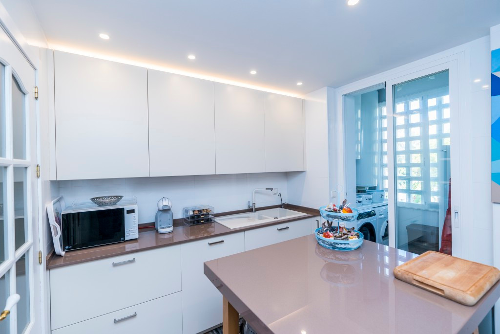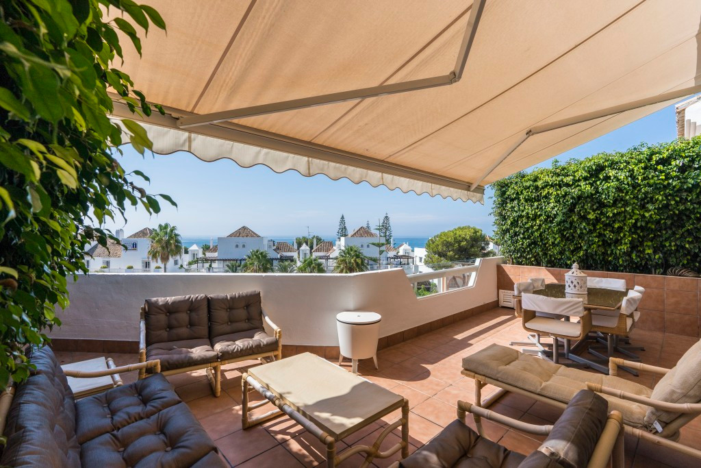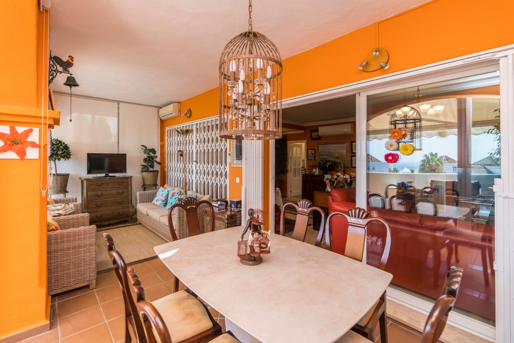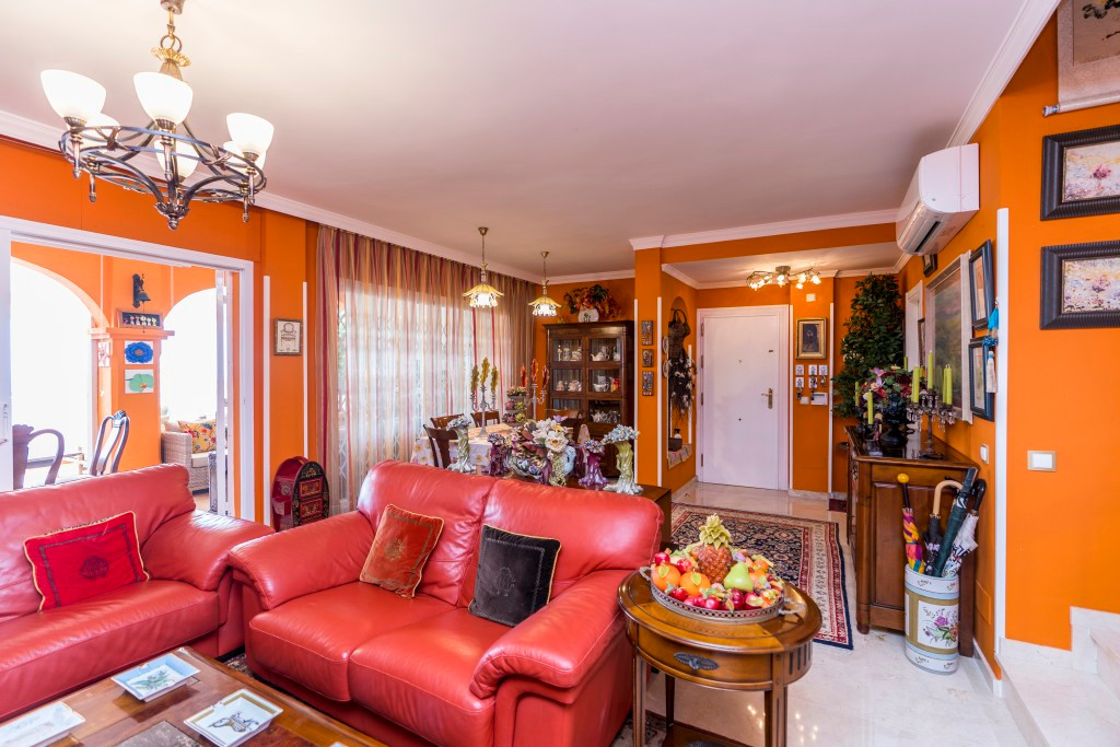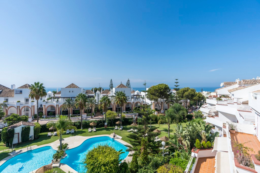 Impressive penthouse duplex in Marbella Playa Elviria, offering three bedrooms, three bathrooms, guest toilet, large and sunny living room, fully equipped new modern kitchen, big partly glazed terrace with stunning sea views and southeast orientation. Including garage, storage, new air con hot and cold, marble floor. Nice community with gardens and pool and only minutes away from amenities and from the sandy beach.