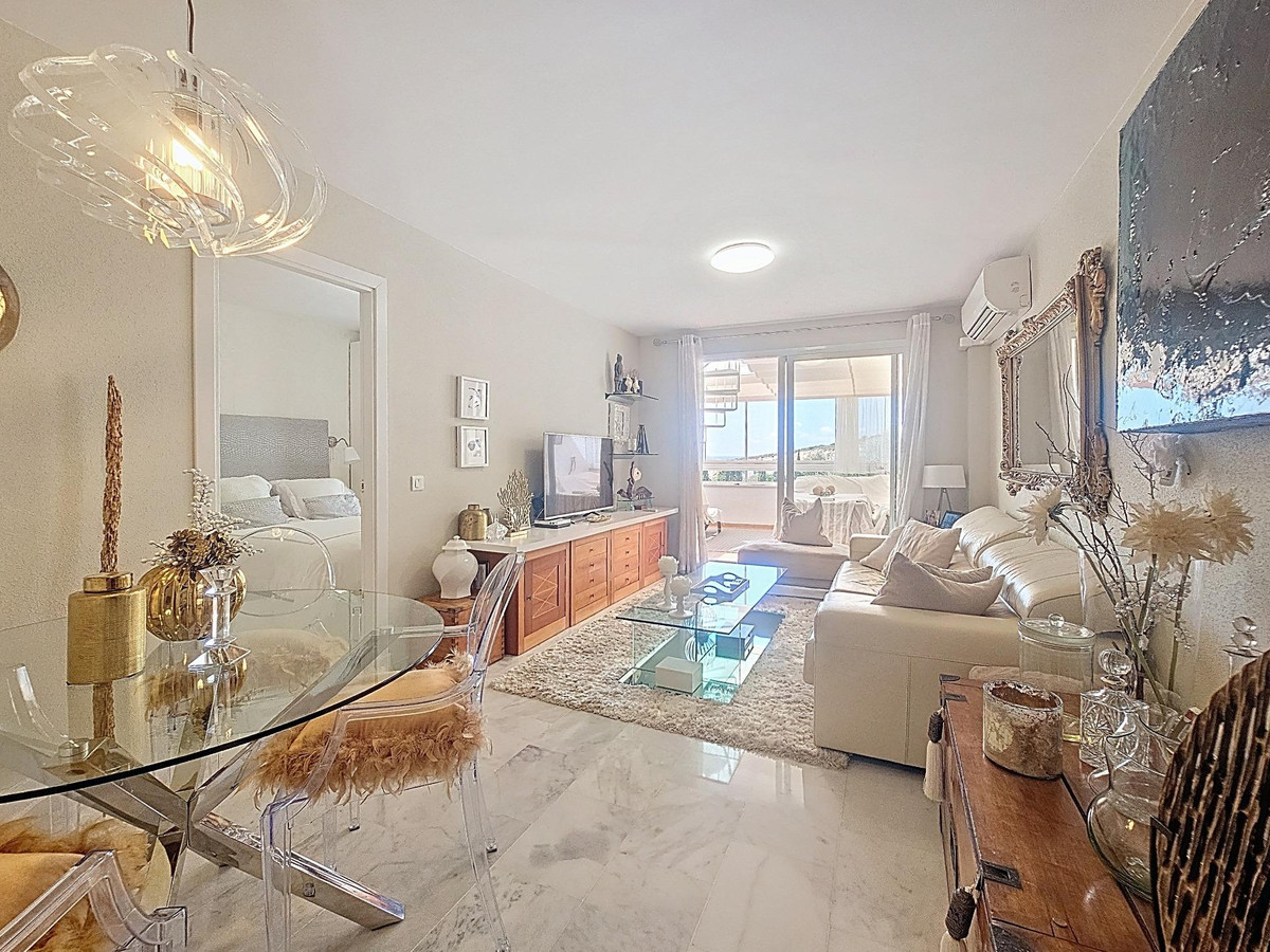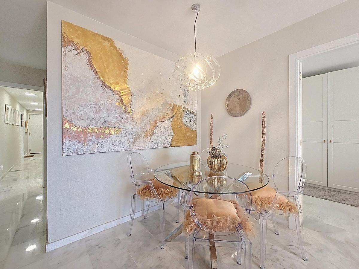Located in the peaceful and sought-after urbanization of Hacienda Casares, near the prestigious Doña Julia golf course, this 3-bedroom, 2-bathroom apartment stands out for its excellent condition and high-quality features. The master bedroom has its own en-suite bathroom, recently renovated with modern materials, offering a private and comfortable space. The independent kitchen is fully equipped with high-end appliances, perfect for cooking enthusiasts. The living area opens onto a pleasant terrace enclosed with a Lumon system, ideal for year-round enjoyment, and stairs lead up to a spacious private solarium of 72 m² boasting spectacular views of the Mediterranean Sea and the Doña Julia golf course. The property also includes a private parking space and a storage room, adding extra convenience to daily life. Close to the beaches, La Duquesa marina, and all amenities, this apartment is perfect as a primary residence or holiday home.