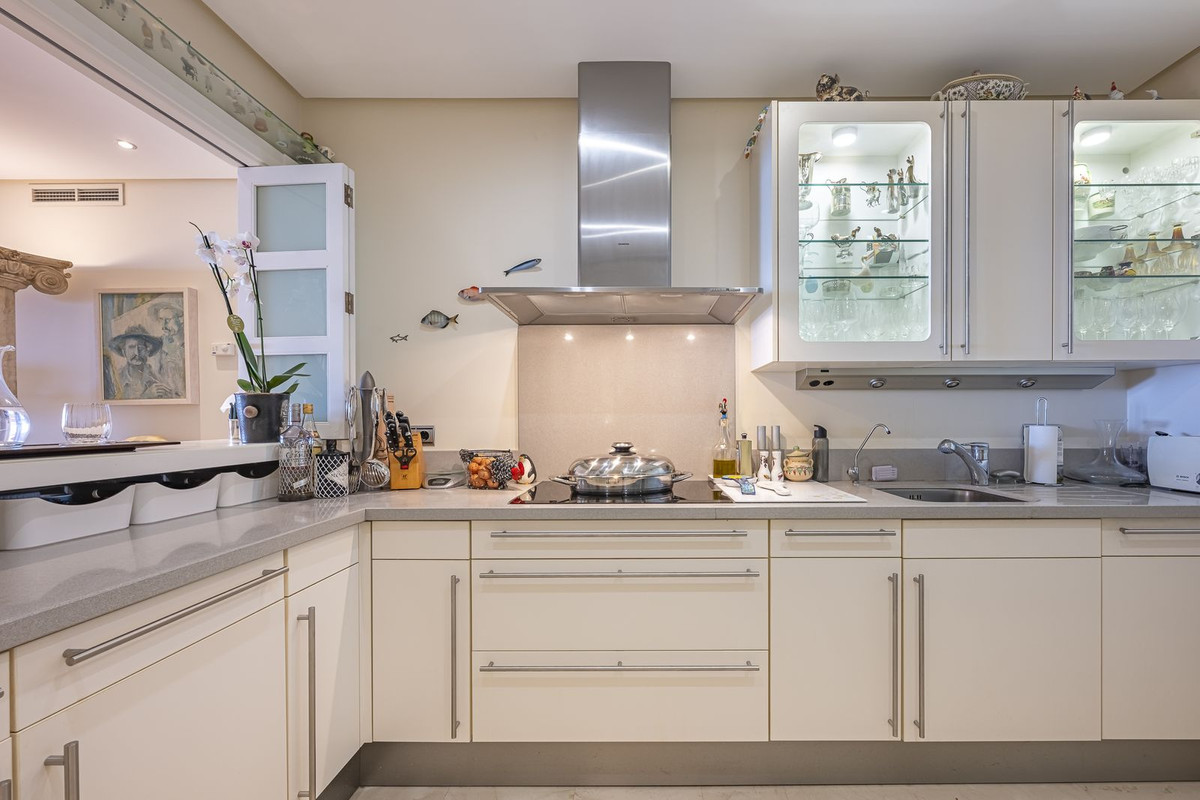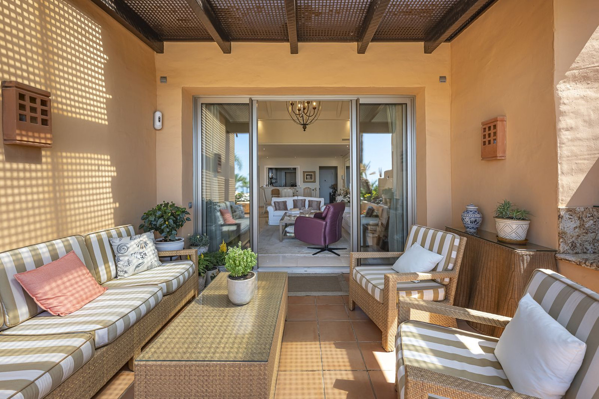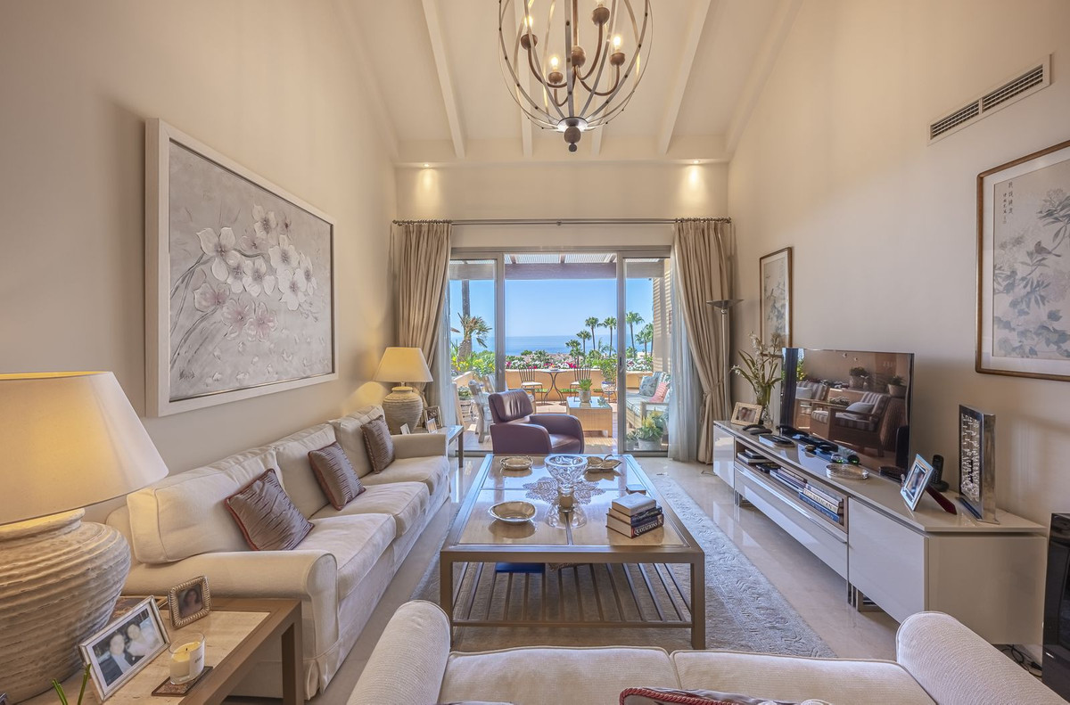 Upon entering, you are immediately captivated by sweeping panoramic views of the Mediterranean Sea, Gibraltar, Africa, and Puerto Banús. These breathtaking views can be appreciated from nearly every corner of the home — including the designer kitchen, refined living room, peaceful master suite, and the expansive sun-soaked terrace. The seamless flow between indoor and outdoor spaces enhances the sense of openness and serenity, perfectly reflecting the penthouse's refined and tranquil ambiance. Built on a single level, it ensures comfort and eliminates the need to climb stairs.