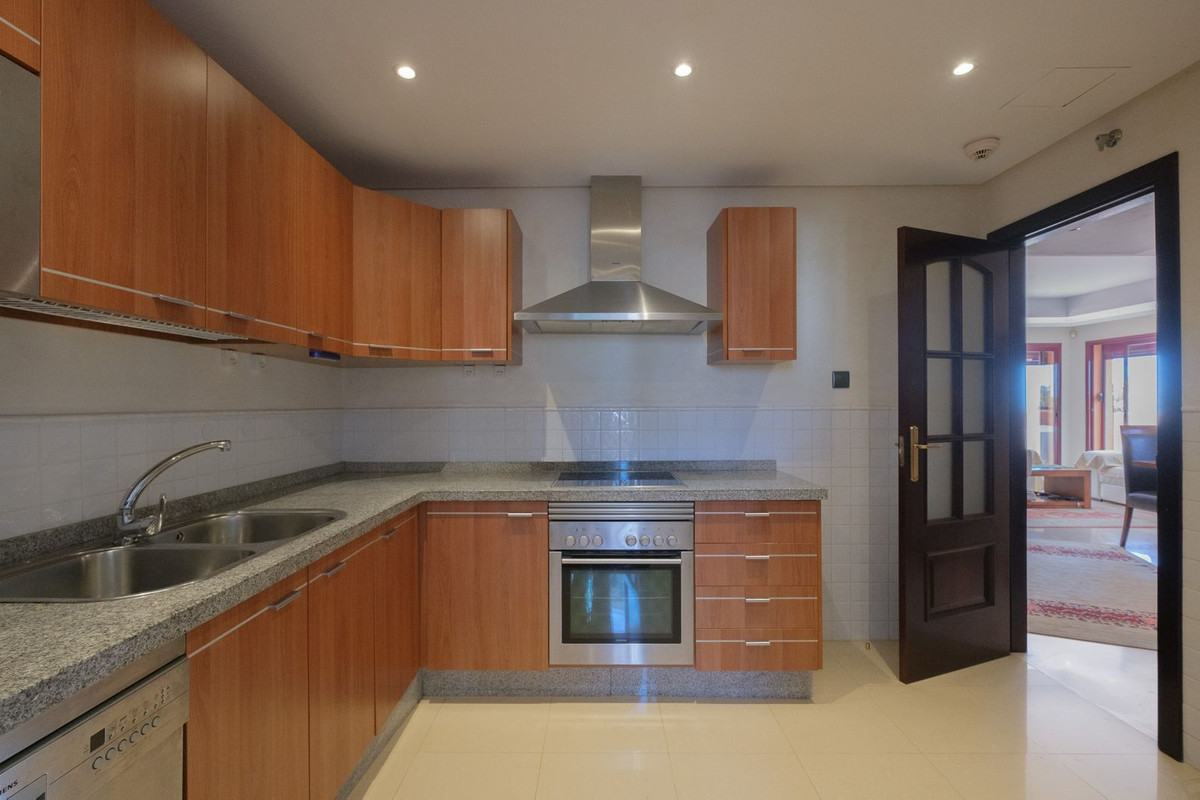 Inside, the apartment features a spacious open-plan living and dining area that opens out onto a generous terrace—perfect for enjoying the views and al fresco dining. The fully equipped kitchen has modern appliances and a separate utility area. The master bedroom includes an en-suite bathroom and direct terrace access, while two additional bedrooms share a stylish family bathroom.