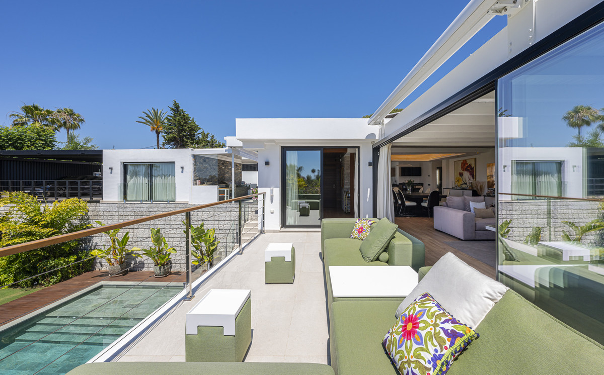 Presenting an exceptional villa in the sought-after El Rosario Urbanization on the esteemed Costa del Sol. This meticulously renovated property epitomizes luxury and stands as one of the premier residential areas on the eastern side of Marbella.