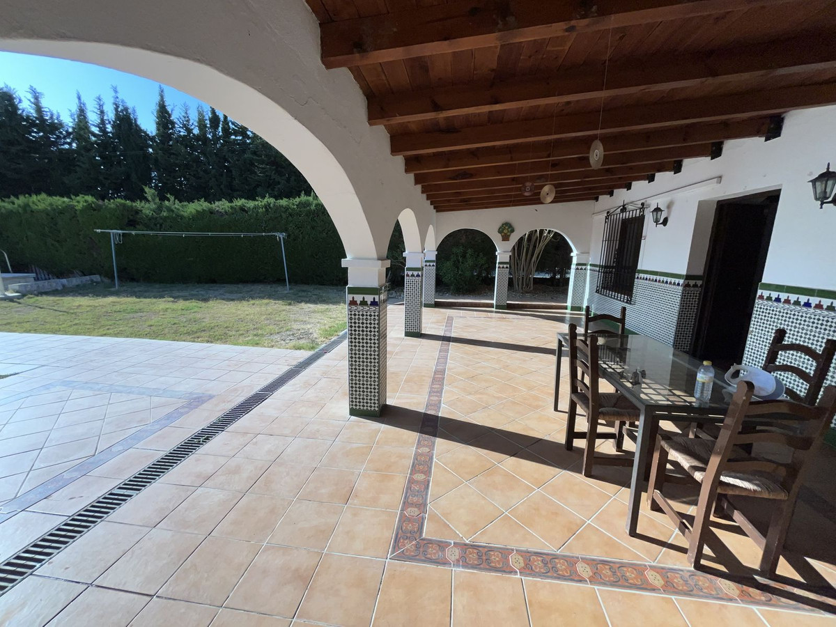 Charming finca–cortijo for sale in Estepona, offered at an exclusive price, featuring 5 bedrooms, 2 bathrooms, 250 m² built, 50 m² of terrace and a large fenced plot of 4,000 m² with orchard and fruit trees. South-facing and surrounded by nature, it enjoys stunning views of the countryside, mountains, coast and orange groves. The property includes a private pool, two community pools, an independent guest apartment, spacious garage, living-dining room with fireplace, study, fully equipped kitchen, fitted wardrobes, barbecue area, well water, additional water tank and comes fully furnished. Located in a quiet area with excellent road access and close to the sea, this finca is ideal for those seeking comfort, privacy and character in one of the most prestigious and highly sought-after areas of the Costa del Sol.