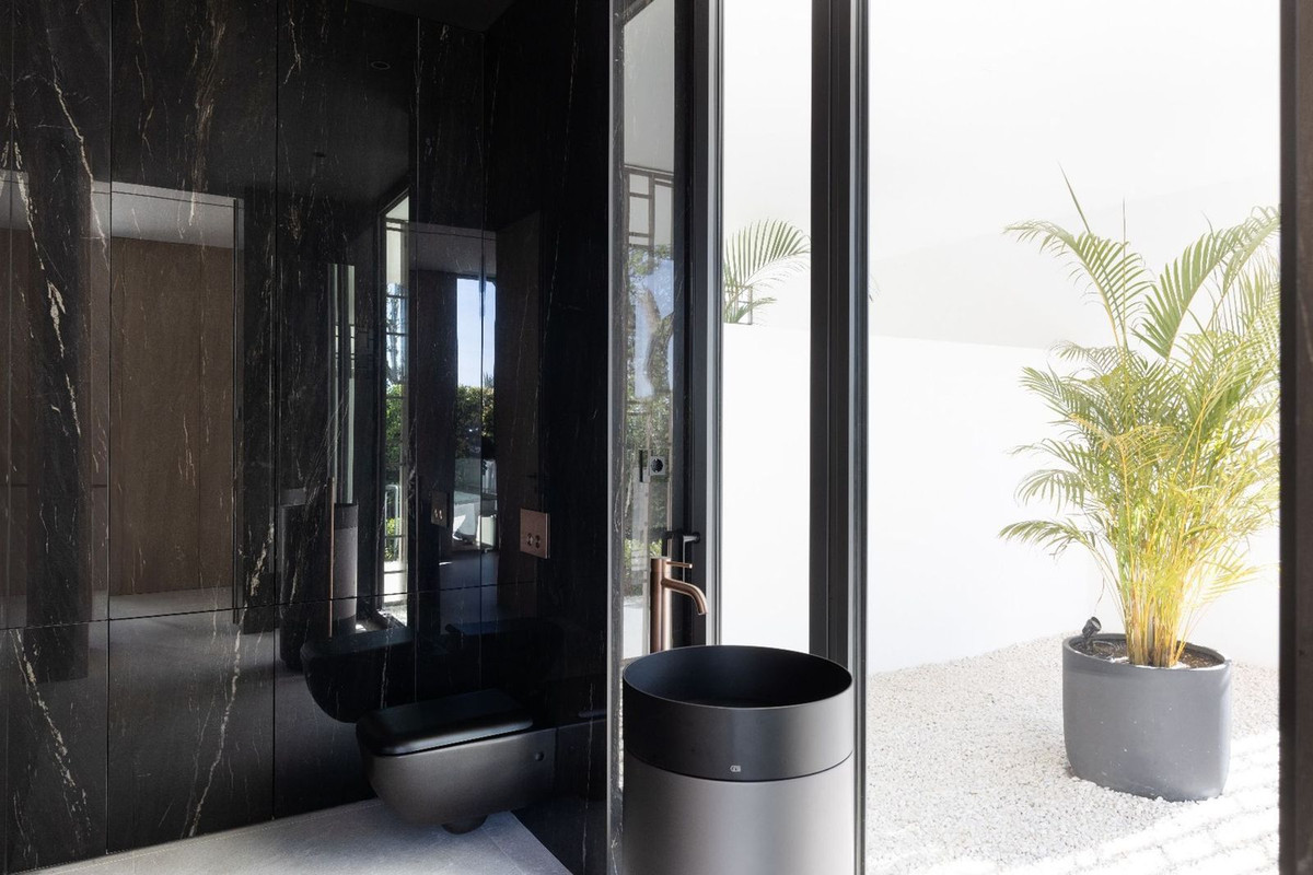 Surrounded with high-end properties of the Golden Mile, this perfectly executed contemporary property is just 250 meters away from the sandy beach and an array of amenities, well-known restaurants and bars, 5-star iconic hotels like Puente Romano, designer boutiques, shops and supermarkets.