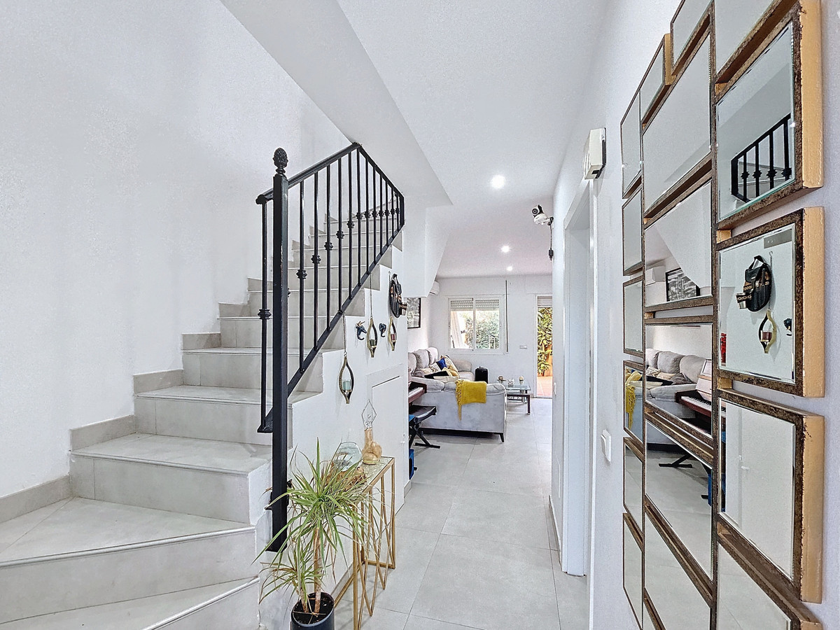 This charming two-story townhouse, located in the peaceful area of El Padron in Estepona, offers the perfect combination of comfort and convenience. Situated in a gated community, just a few minutes' drive from Beso Beach/Laguna Beach and various amenities, this property stands out for its south-facing orientation and direct access to the pool from the terrace, making it an ideal choice to enjoy the Mediterranean climate.