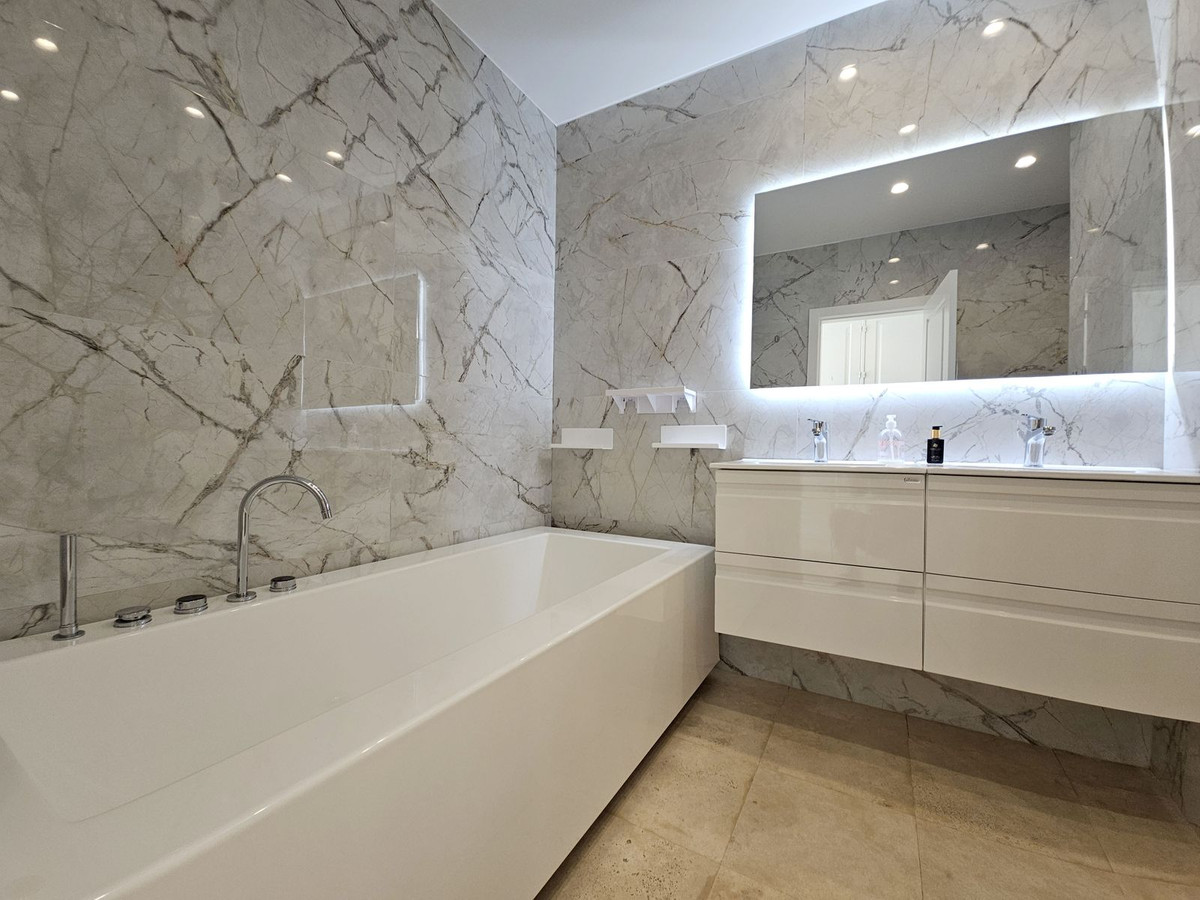 Recently modernised throughout, the property features a stunning open-plan kitchen with contemporary finishes that flows seamlessly into the bright and spacious living area. Large windows and terraces fill the home with natural light, while offering relaxing sea views.